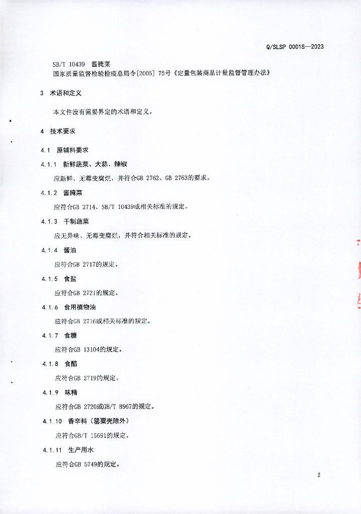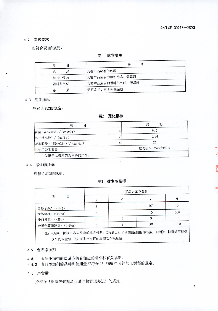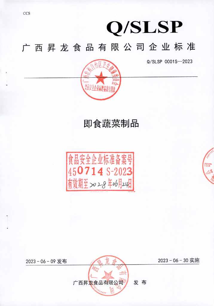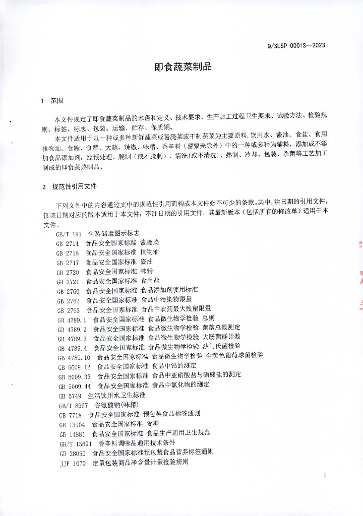 Q/SLSP 0001S-2023 即食蔬菜制品