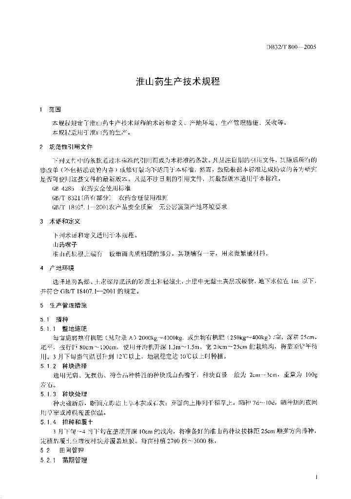 DB32/T 800-2005 淮山药生产技术规程