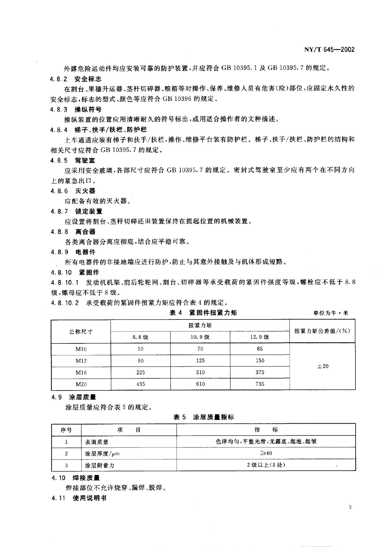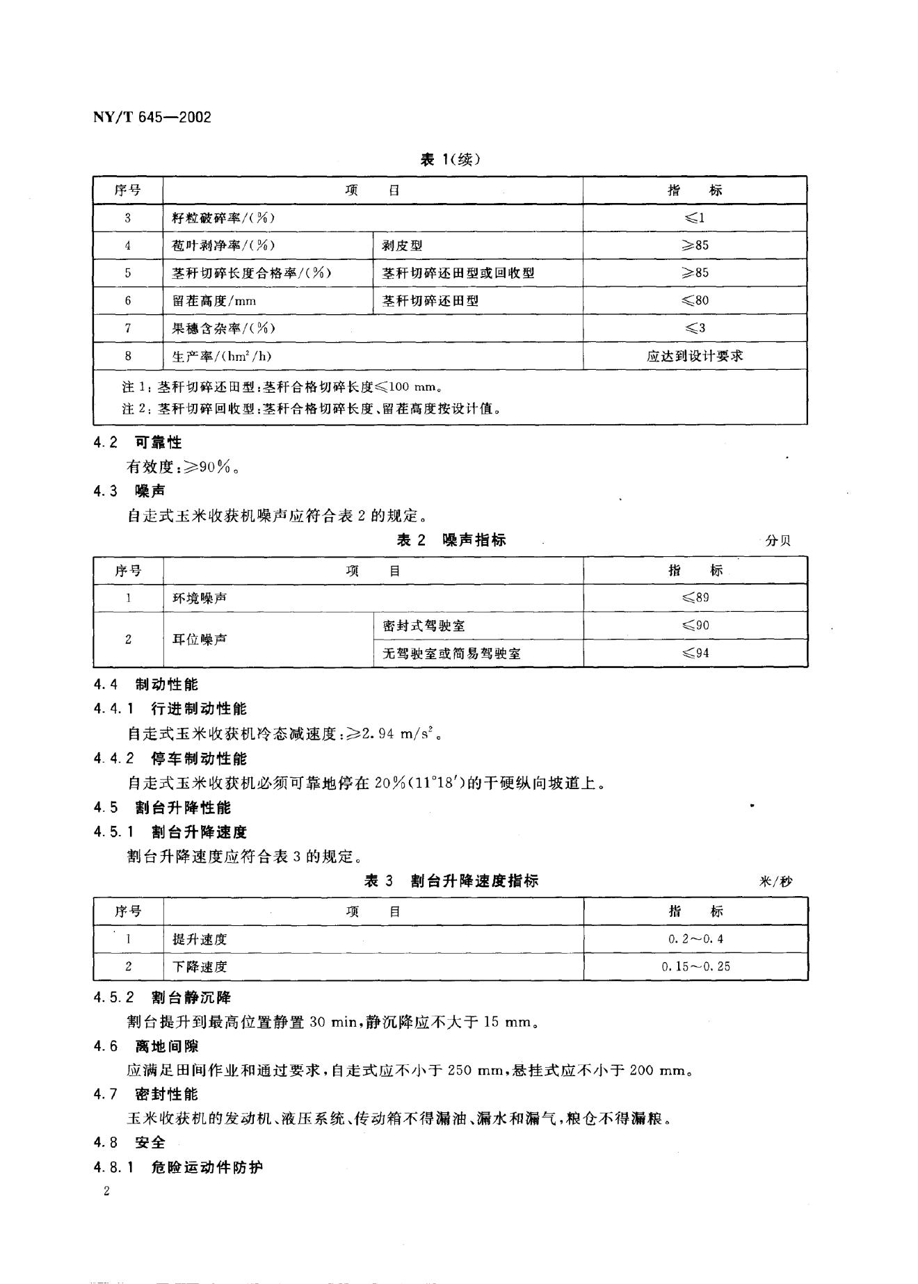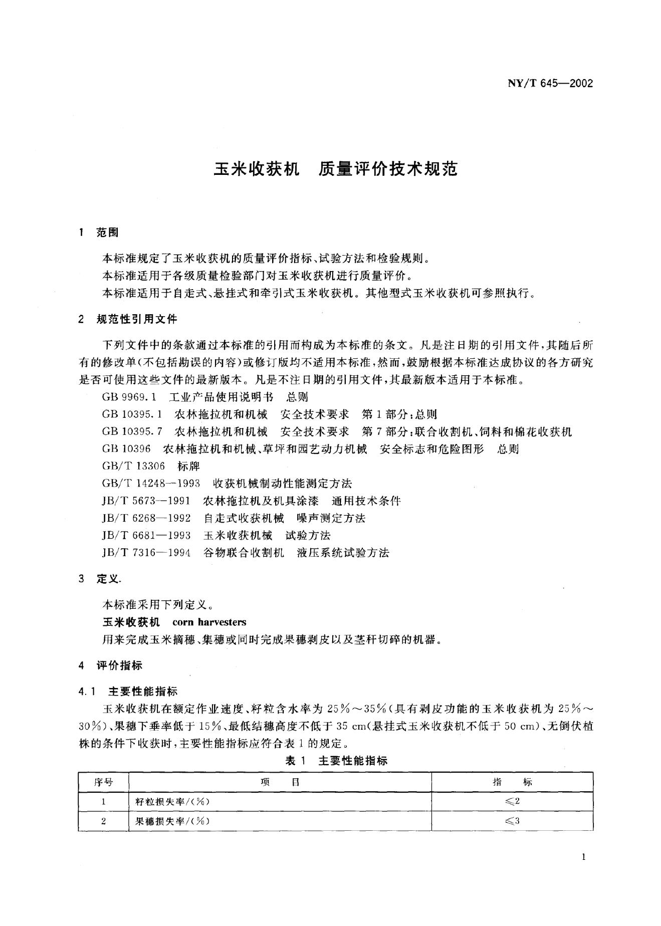NY/T 645-2002 玉米收获机质量评价技术规范