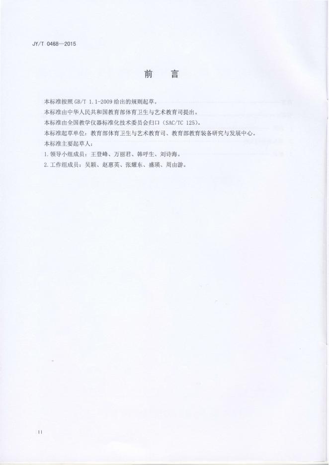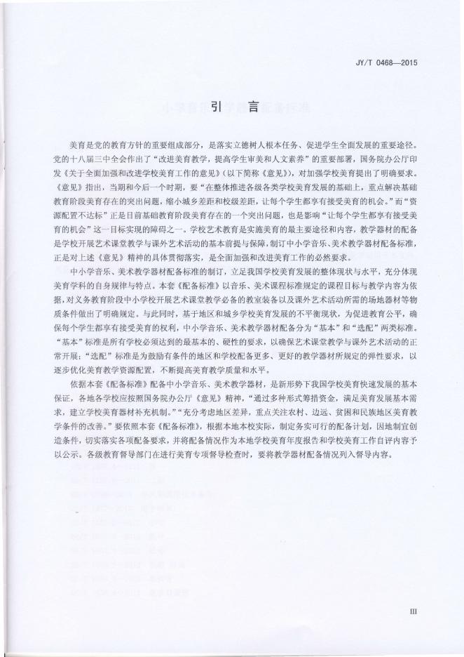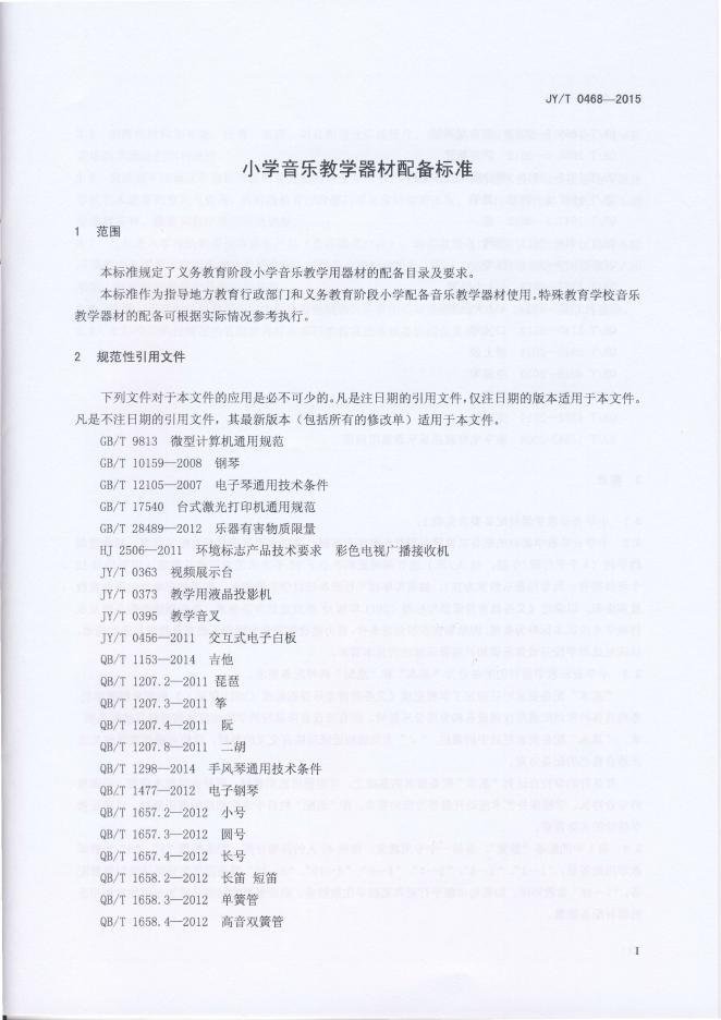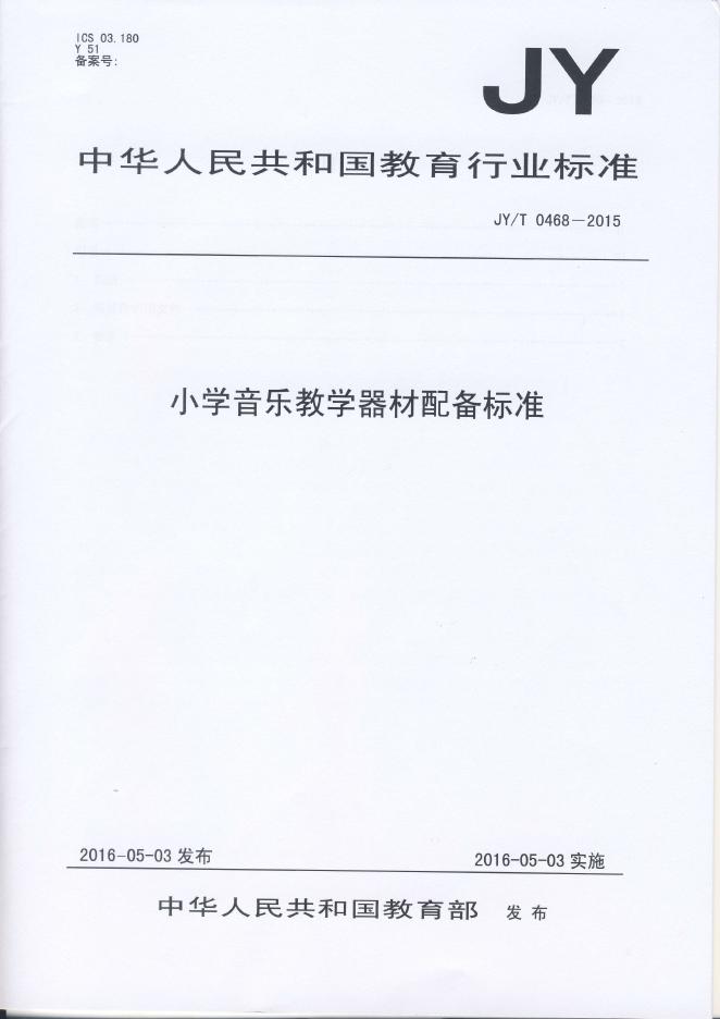JY/T 0468-2015 小学音乐教学器材配备标准
