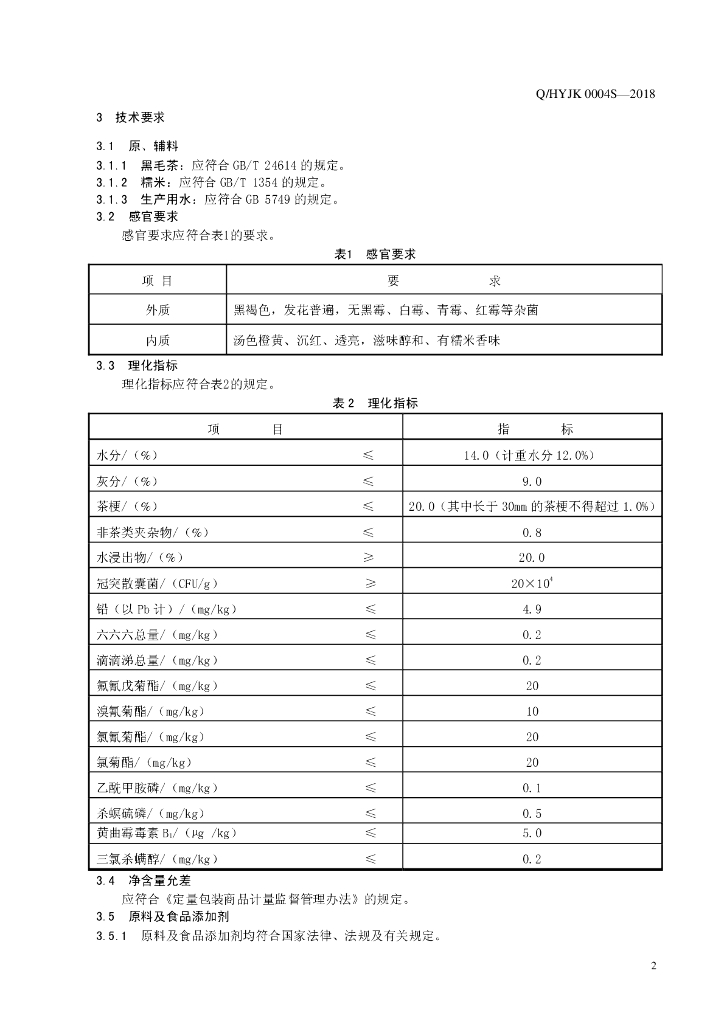 Q/HYJK 0004S-2018 糯米香调味茯茶