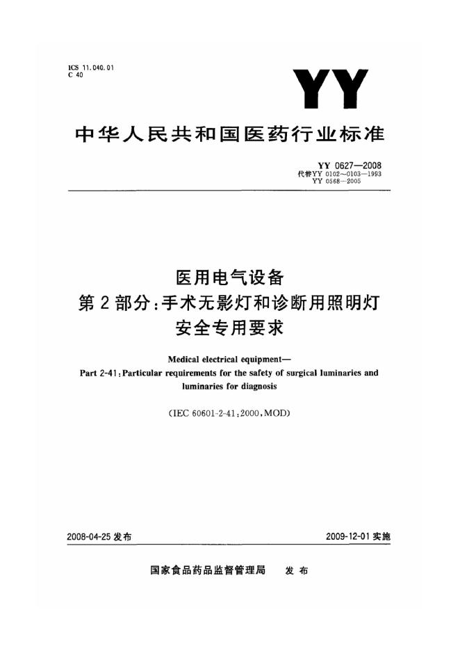 YY 0568-2005 医用电气设备 第2部分:手术照明灯和诊断照明灯安全专用要求