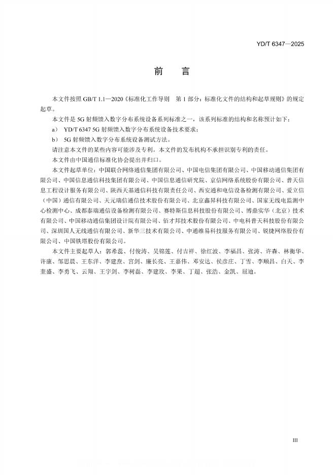 中国联合网络通信集团有限公司、中国电信集团有限公司、中国移动通信集团有限公司、中国信息通信科技集团有限公司、中国信息通信研究院、京信网络系统股份有限公司、普天信息工程设计服务有限公司、陕西天基通信科技有限责任公司、西安通和电信设备检测有限公司、爱立信(中国)通信有限公司、天元瑞信通信技术股份有限公司、北京鑫昇科技有限公司、国家无线电监测中心检测中心、成都泰瑞通信设备检测有限公司、赛特斯信息科技股份有限公司、博鼎实华(北京)技术有限公司、中国移动通信集团设计院有限公司、佰才邦技术股份有限公司、中电科普天科技