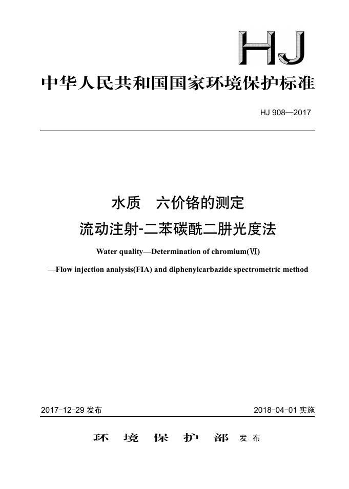 HJ 908-2017 水质 六价铬的测定 流动注射-二苯碳酰二肼光度法