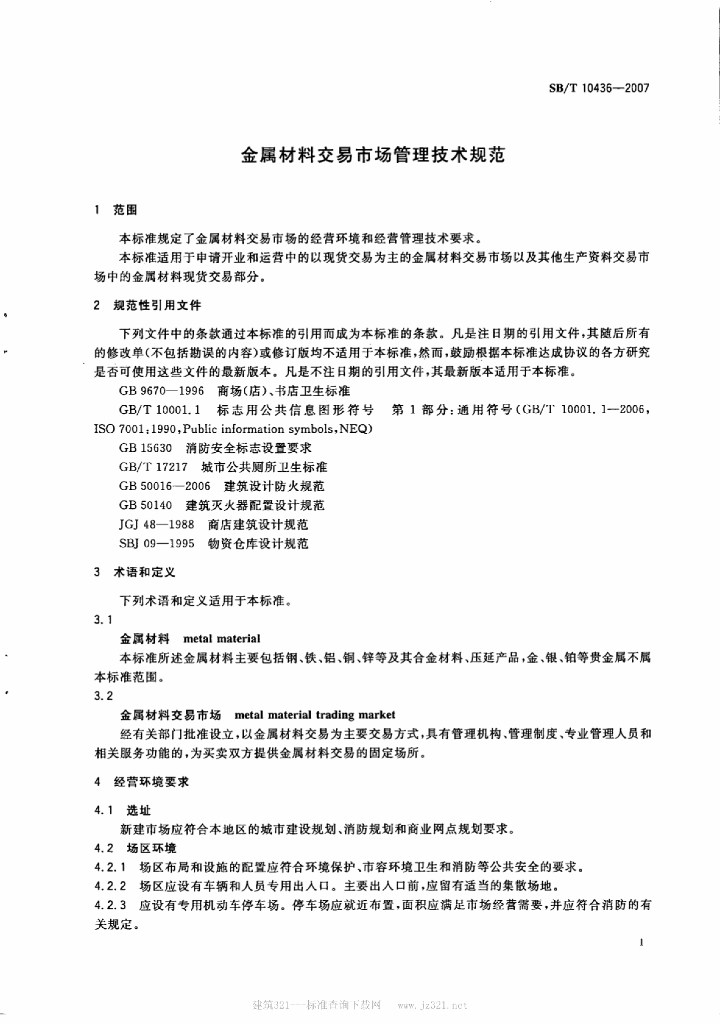 SB/T 10436-2007 金属材料交易市场管理技术规范