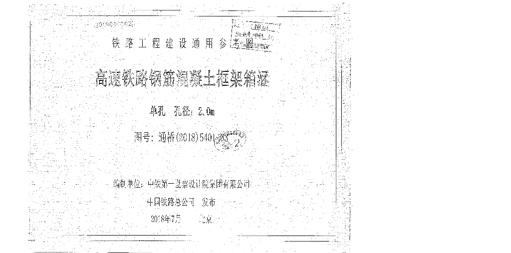 通桥(2018)5401-03 高速铁路钢筋混凝土框架箱涵(单孔、孔径:2.0m)图集