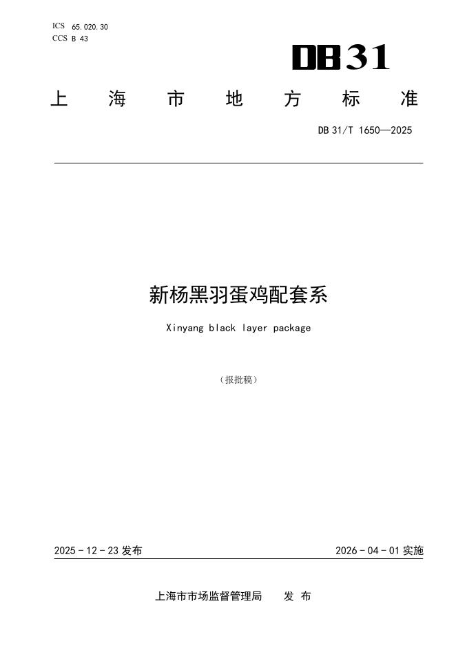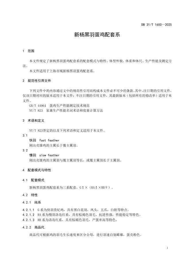 DB31/T 1650-2025 新杨黑羽蛋鸡配套系