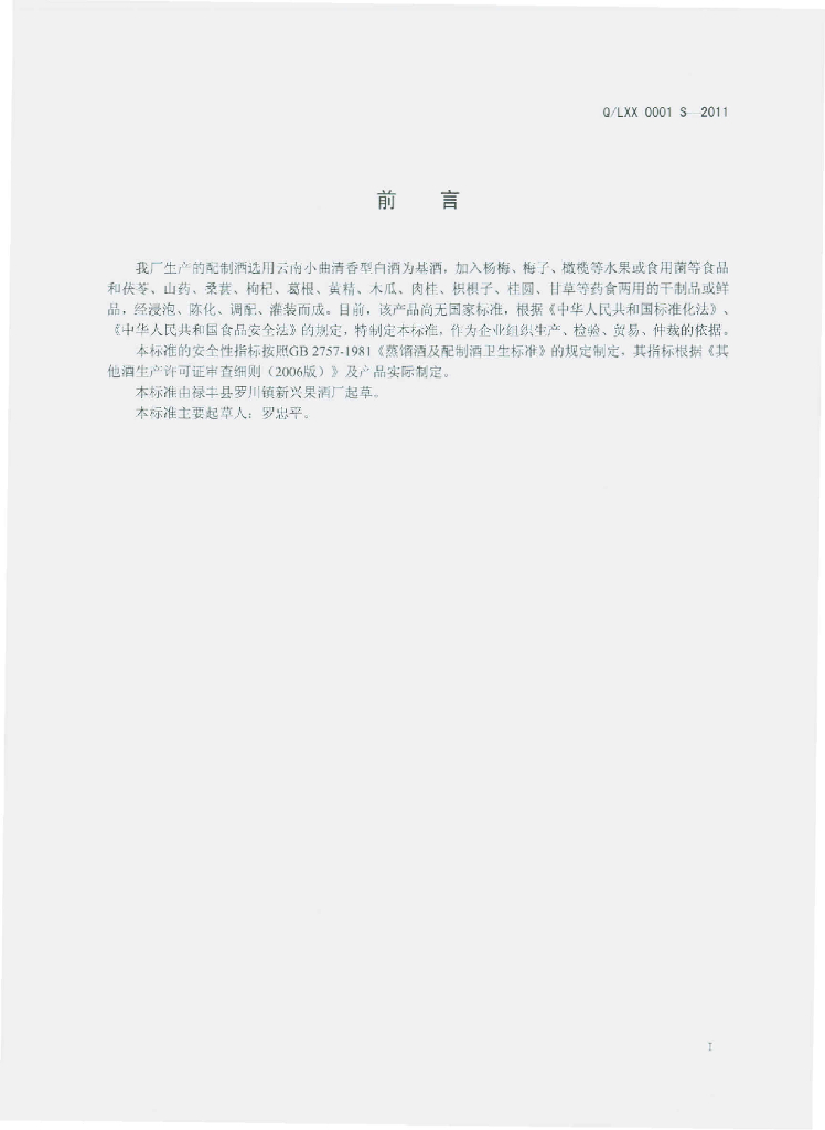 Q/LXX 0001S-2011 配制酒