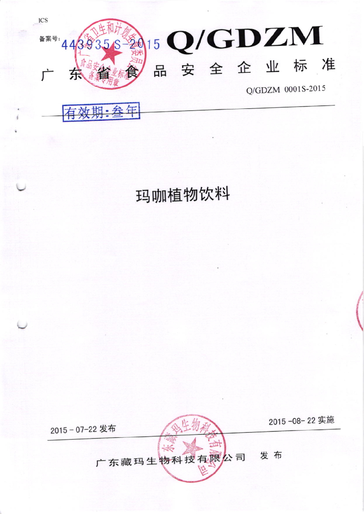 Q/GDZM 0001S-2015 广东藏玛生物科技有限公司 玛咖植物饮料