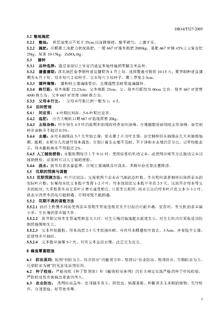 DB34/T 527-2005 黑糯玉米种子繁育技术规程