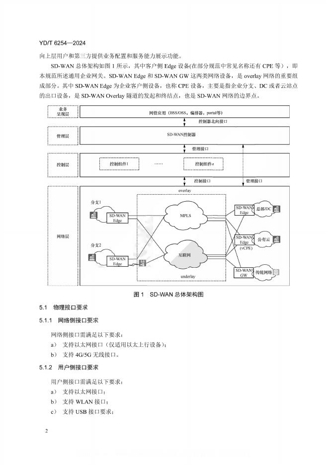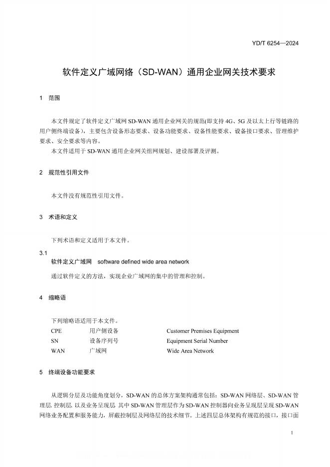 YD/T 6254-2024 软件定义广域网络(SD-WAN)通用企业网关技术要求