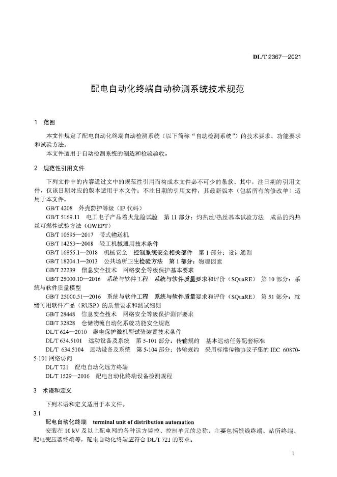 DL/T 2367-2021 配电自动化终端自动检测系统技术规范