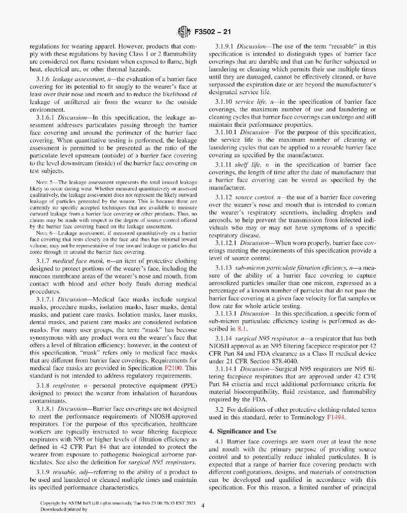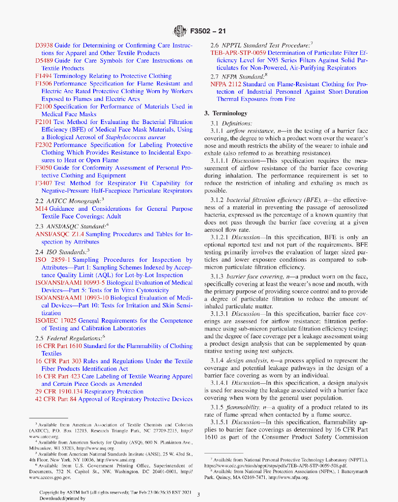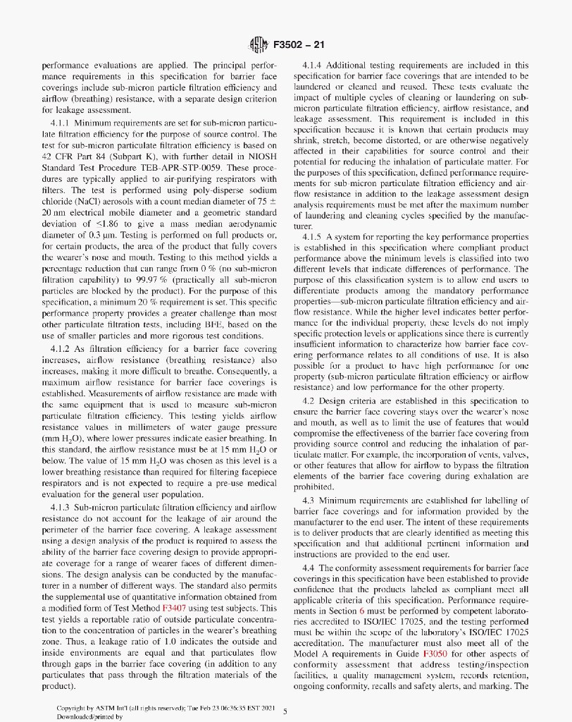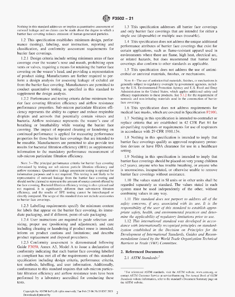 ASTM F3502-21 Standard Specification forBarrier Face Coverings