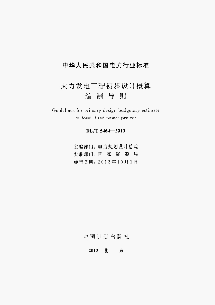 DL/T 5464-2013 火力发电工程初步设计概算编制导则