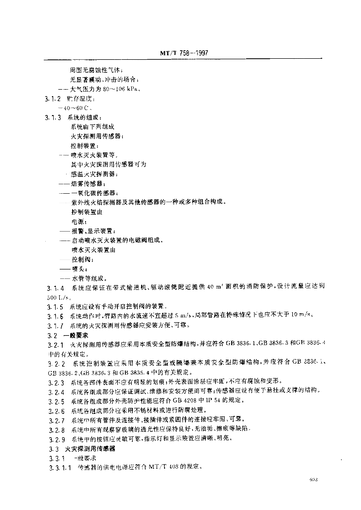 MT/T 758-1997 煤矿带式输送机电气式自动喷水灭火系统通用技术条件