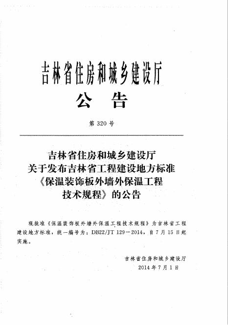 DB22/JT 129-2014 保温装饰板外墙外保温工程技术规程