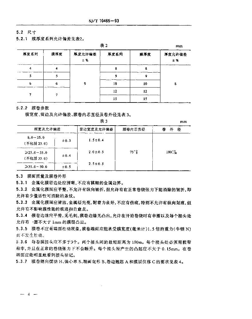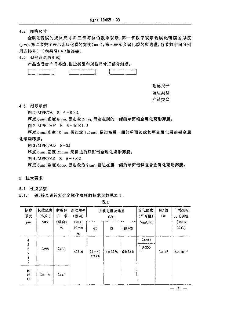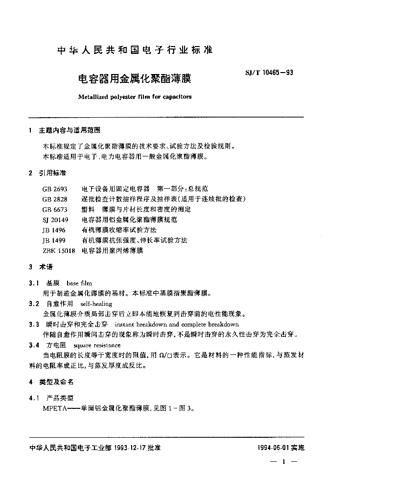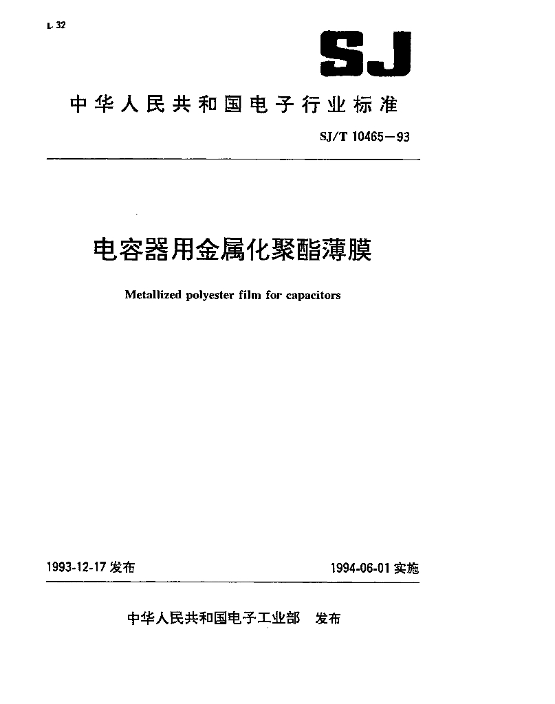 SJ/T 10465-1993 电容器用金属化聚酯薄膜