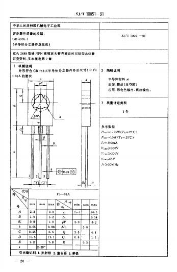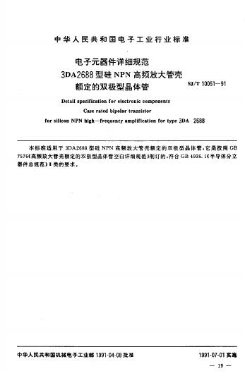 SJ/T 10051-1991 3DA2688型晶体管详细规范