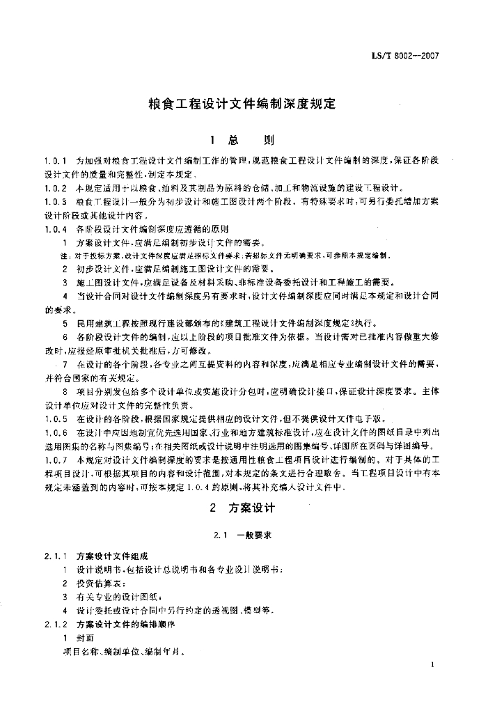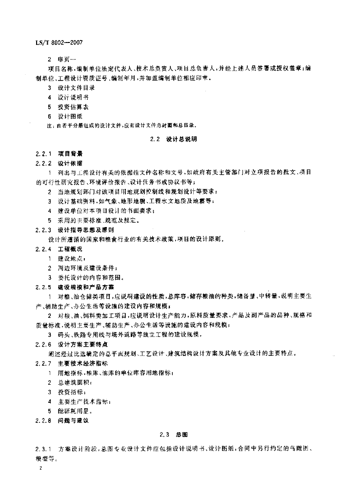 LS/T 8002-2007 粮食工程设计文件编制深度规定
