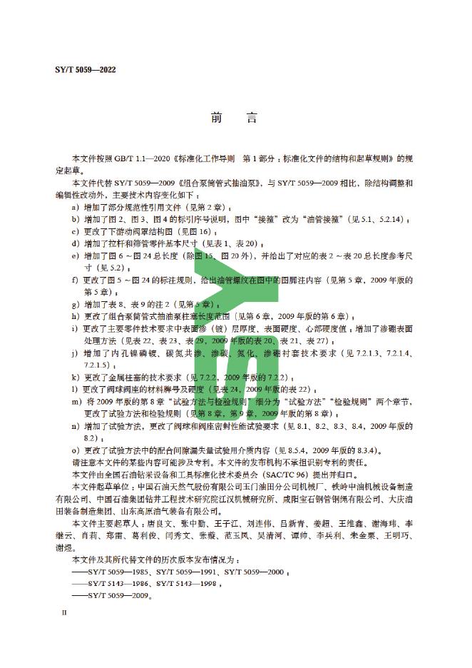 - 代替标准:SY/T 5059-2009 部分代替:SY/T 5059-2009