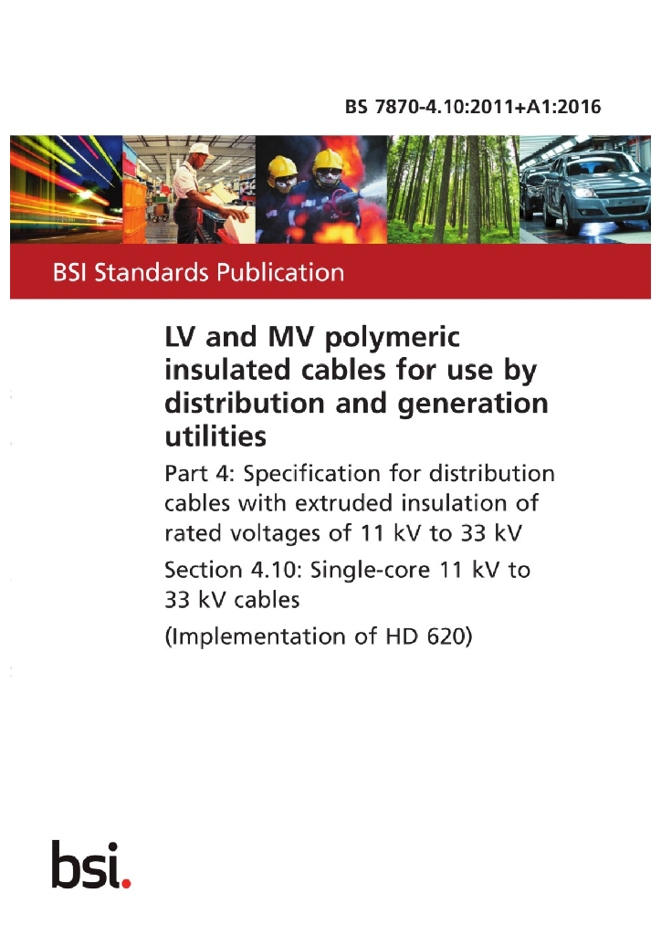 BS 7870-4.10:2011+A1:2016 用于配电和发电设备的低压和中压聚合物绝缘电缆 第4部分 额定电压为11千伏至33千伏的挤压绝缘配电电缆规范 第4.10节 单芯11KV至33KV电缆