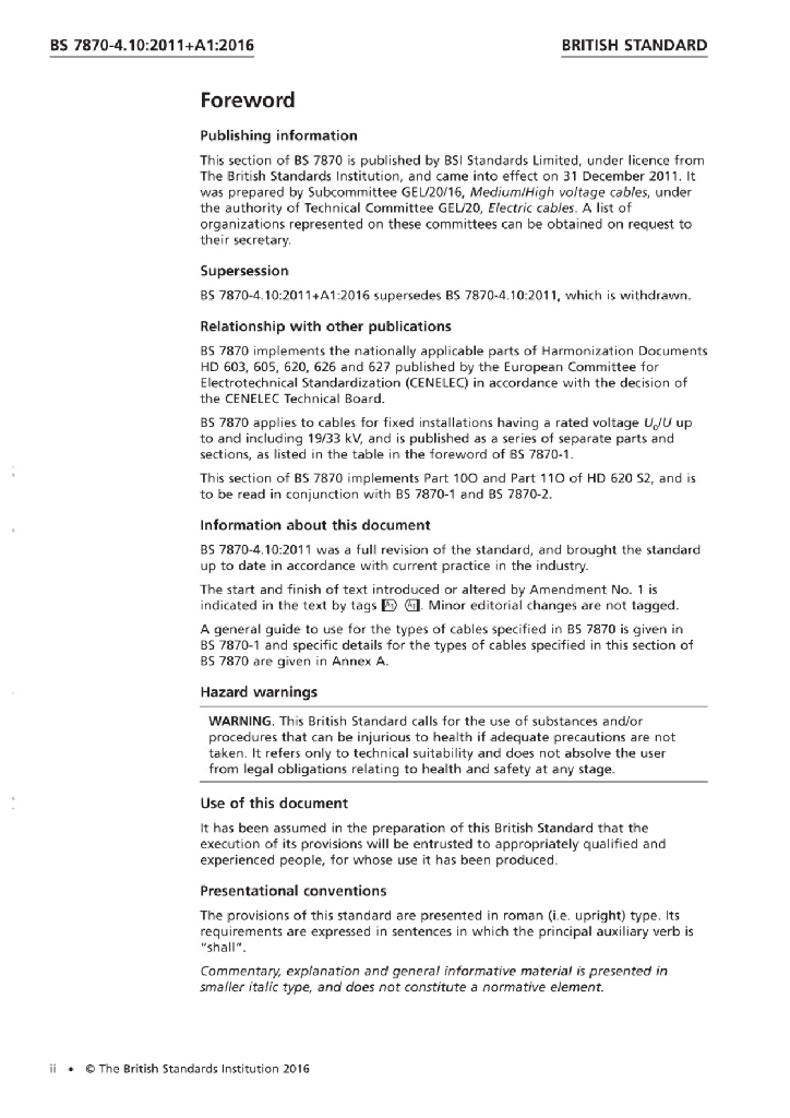 - 2BS 6724:2016 固定敷设用、受火侵袭时烟雾和腐蚀性气体排放量低的额定电压600 1000V和1900 3300V热固性绝缘铠装电缆