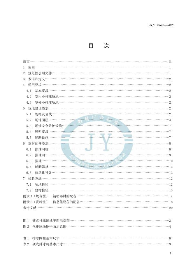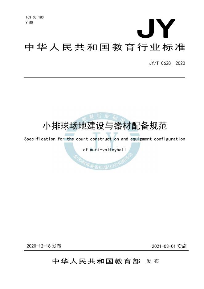 JY/T 0628-2020 小排球场地建设与器材配备规范