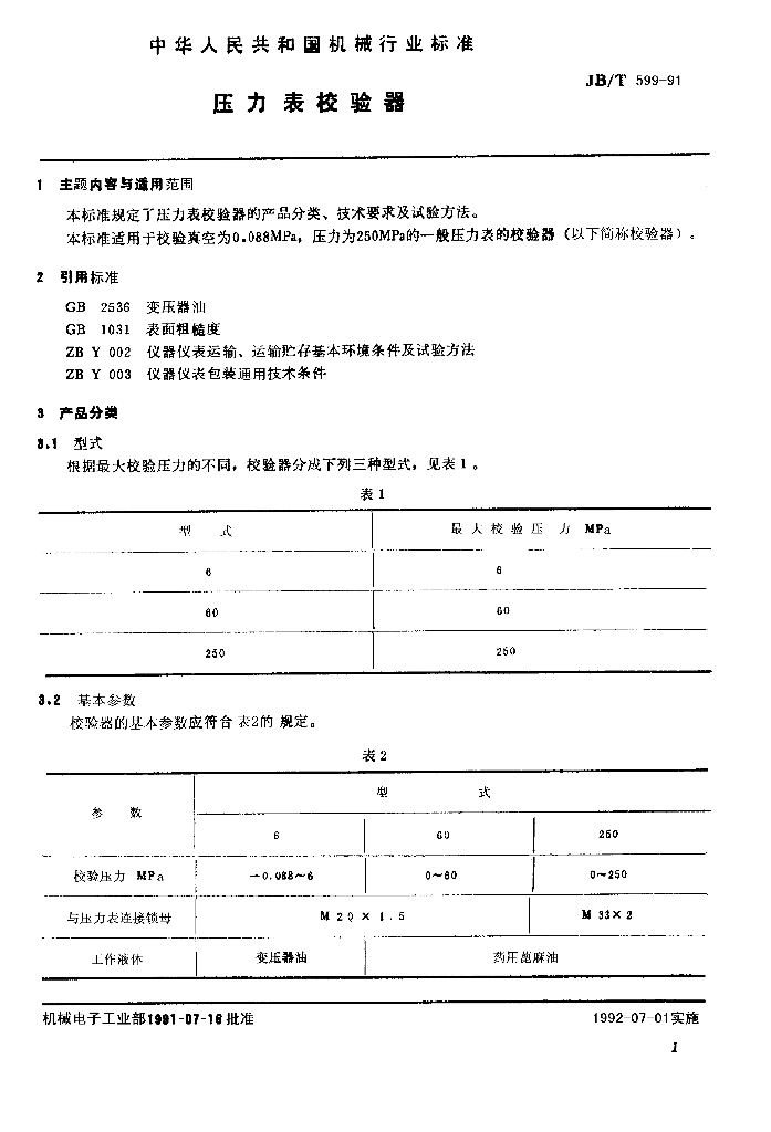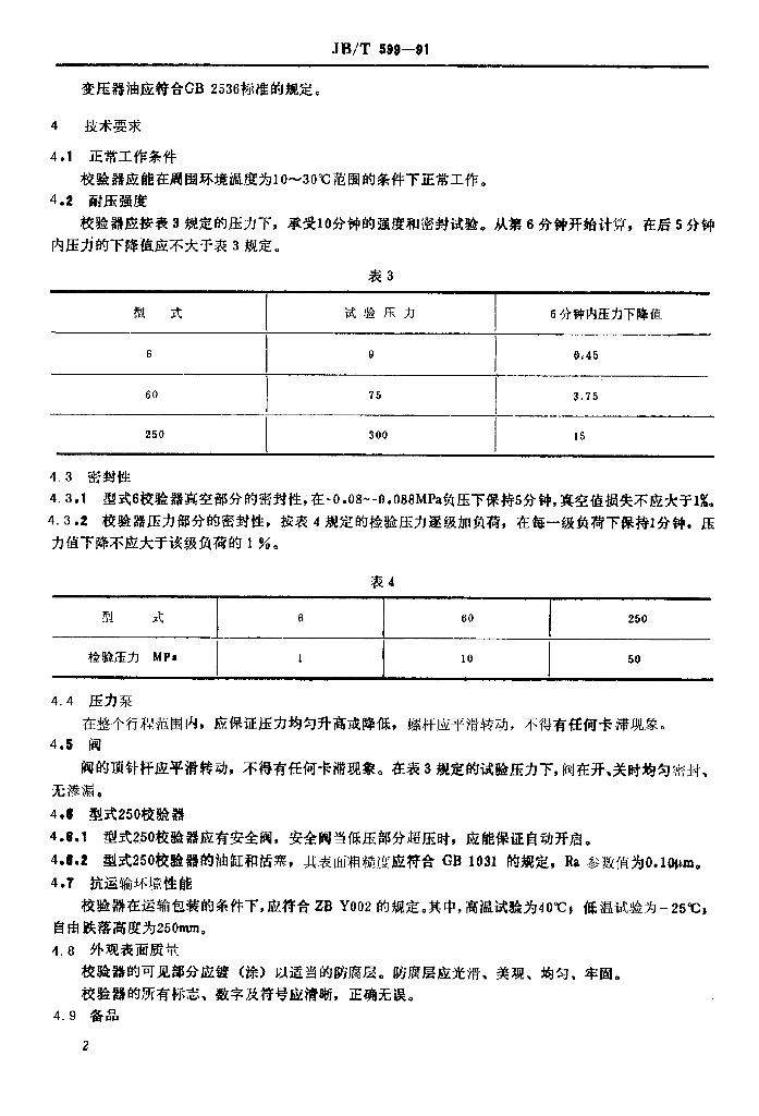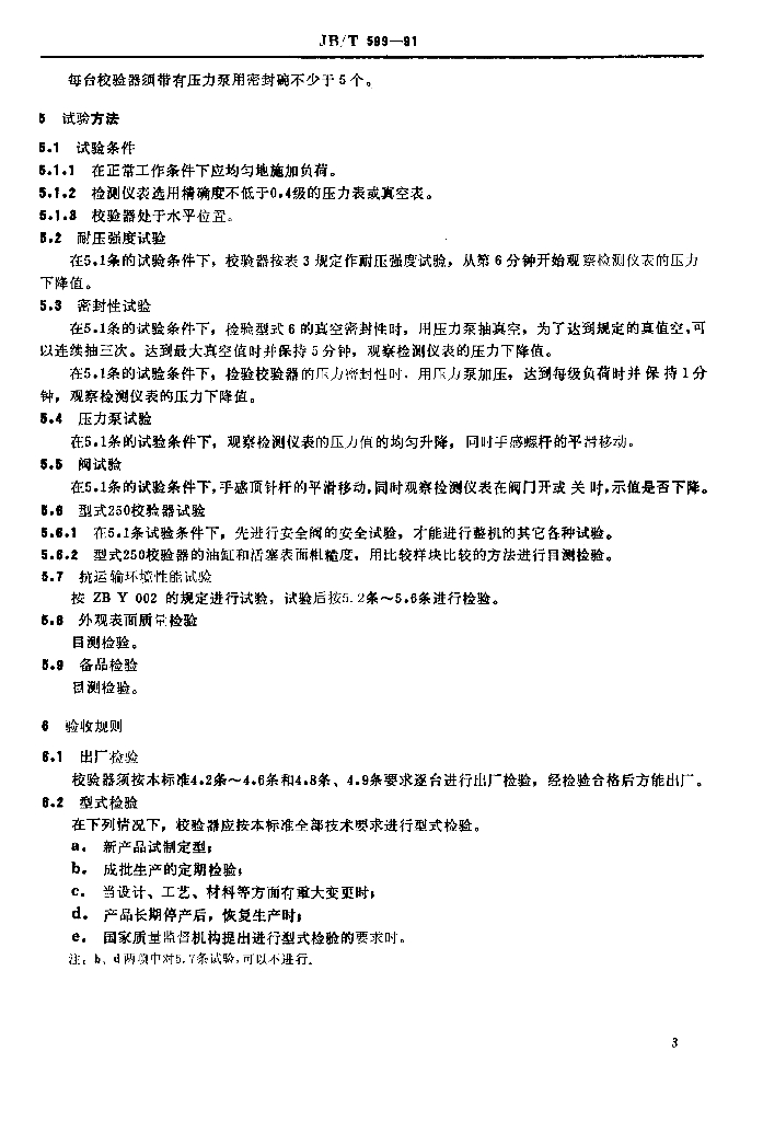JB/T 599-1991 压力表校验器