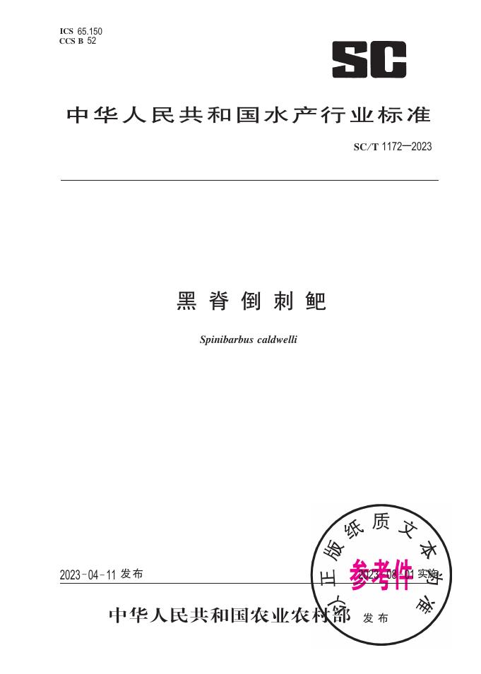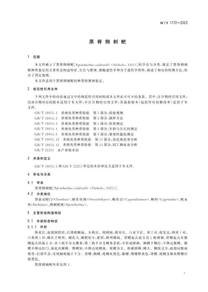 SC/T 1172-2023 黑脊倒刺鲃
