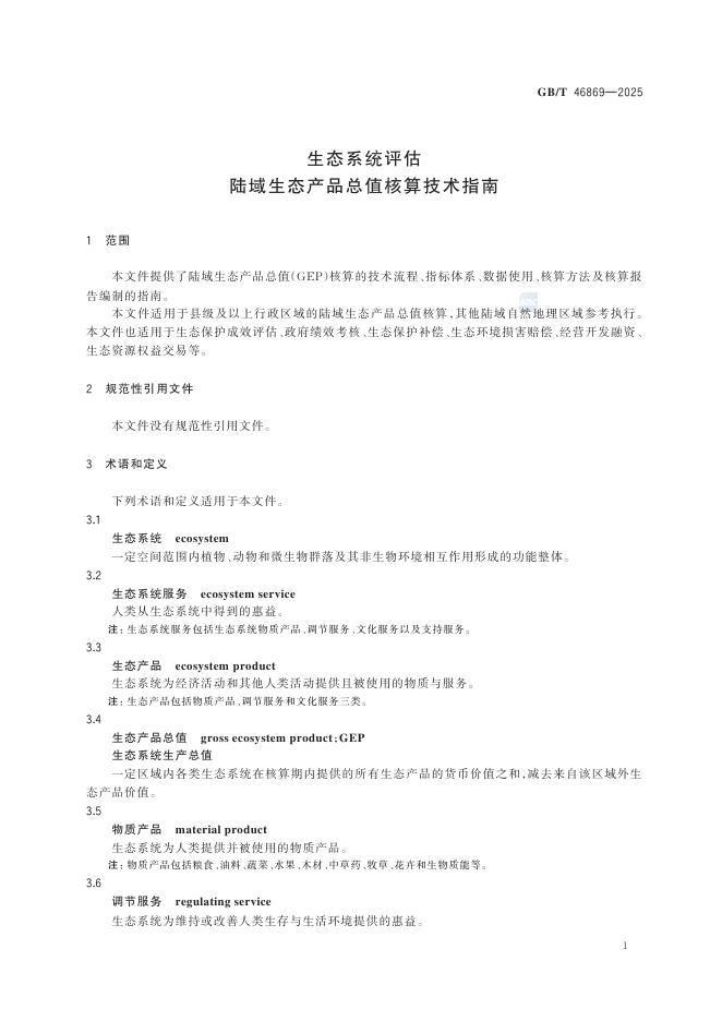 GB/T 46869-2025 生态系统评估 陆域生态产品总值核算技术指南