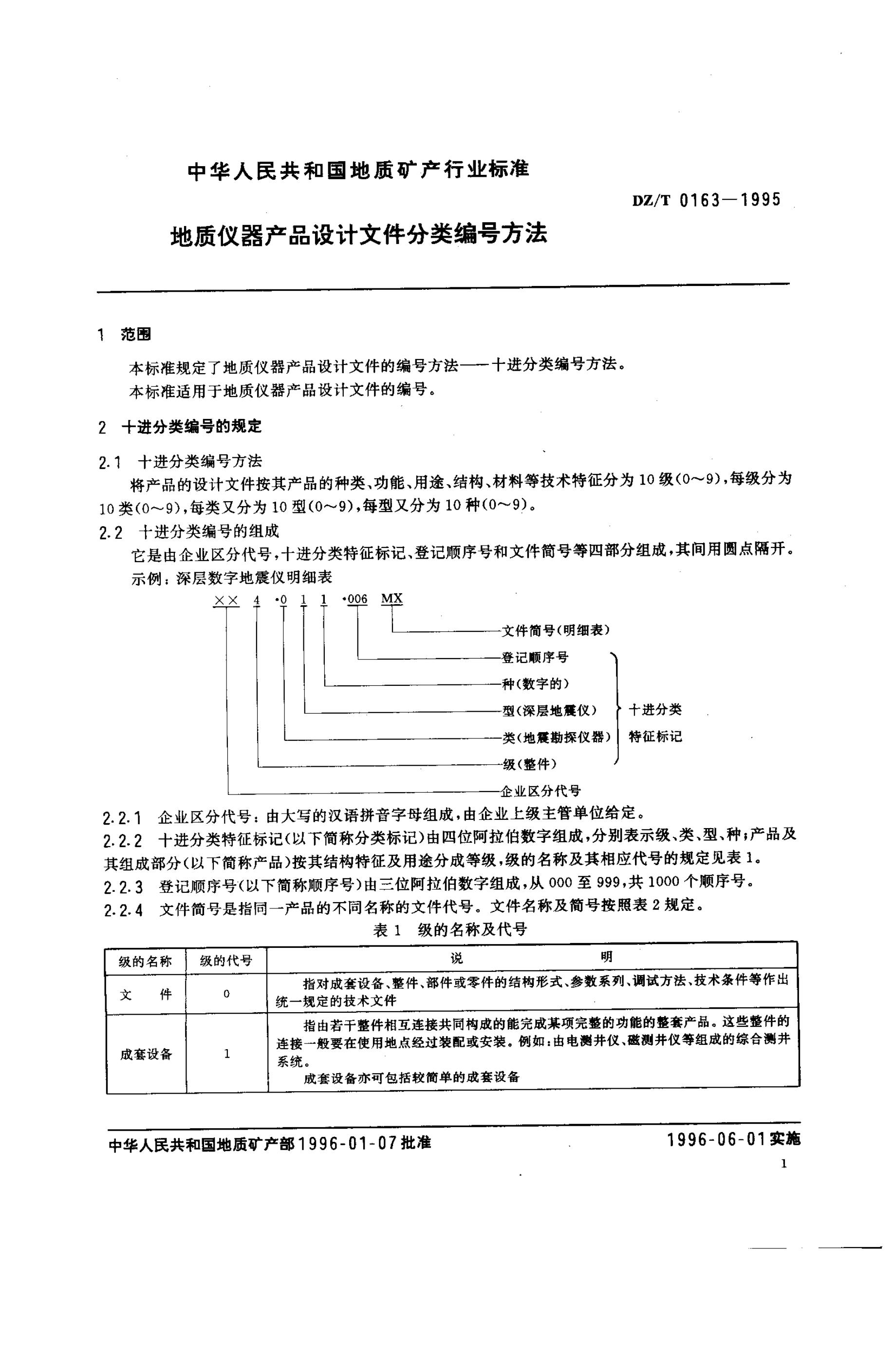 DZ/T 163-1995 地质仪器产品设计文件分类编号方法