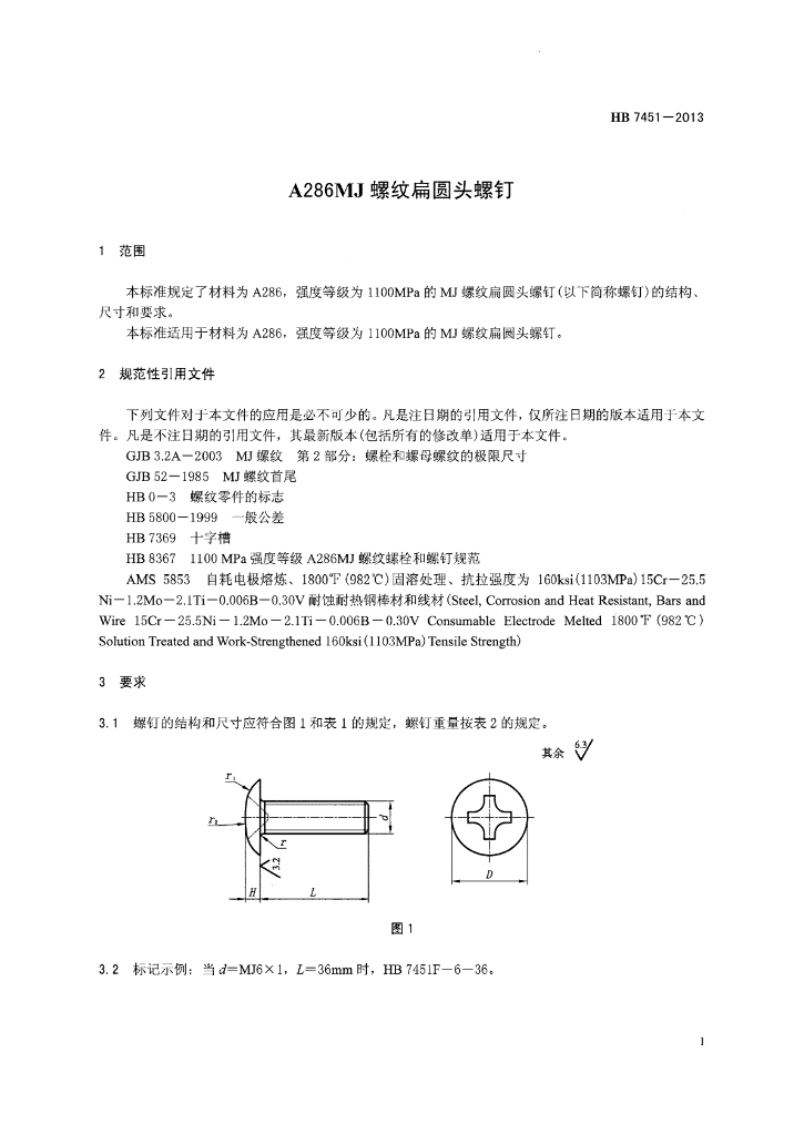 HB 7451-2013 A286MJ螺纹扁圆头螺钉