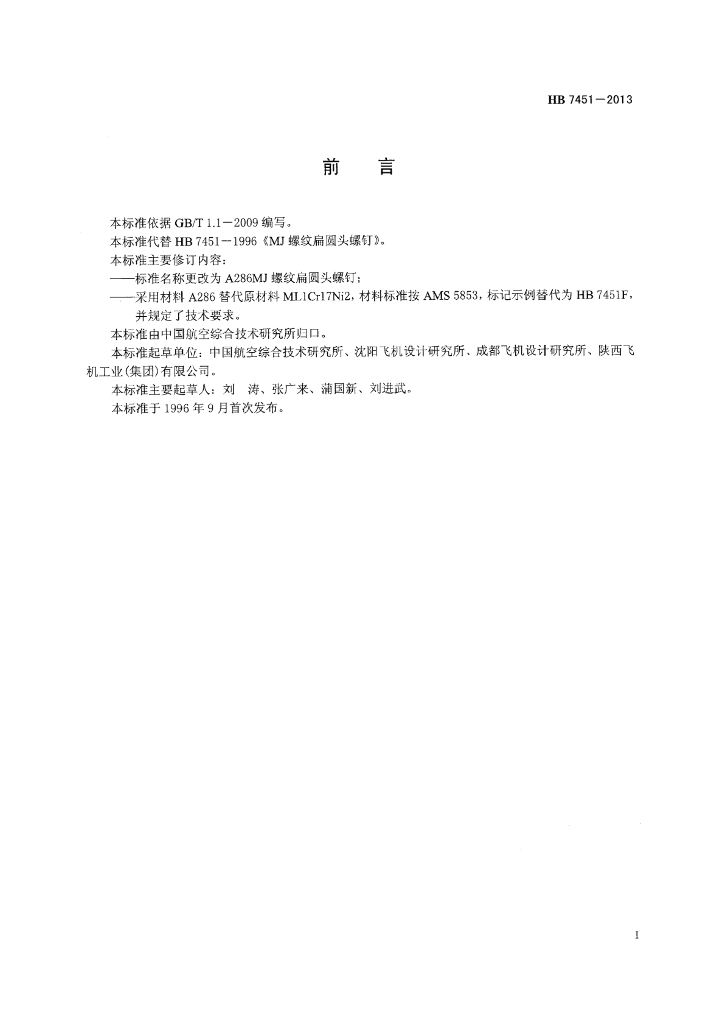 • 代替标准:HB 7451-1996