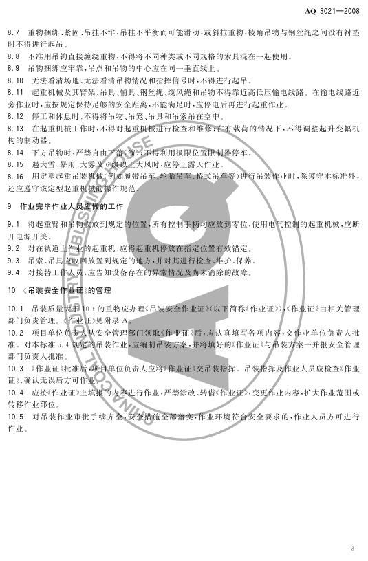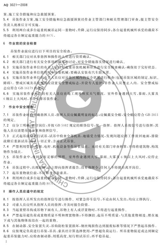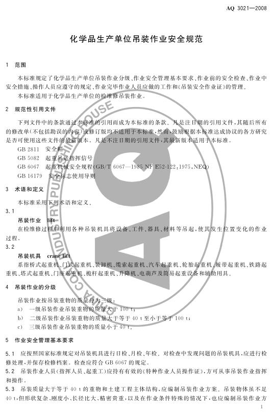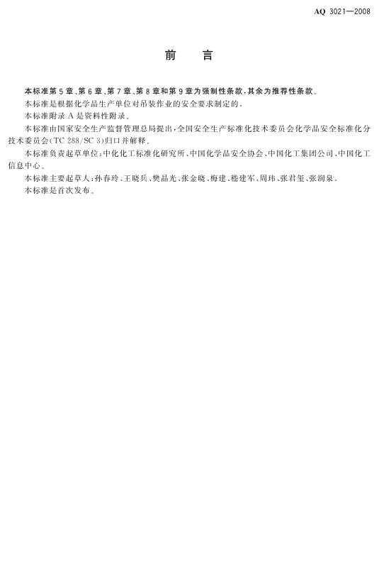AQ 3021-2008 化学品生产单位吊装作业安全规范