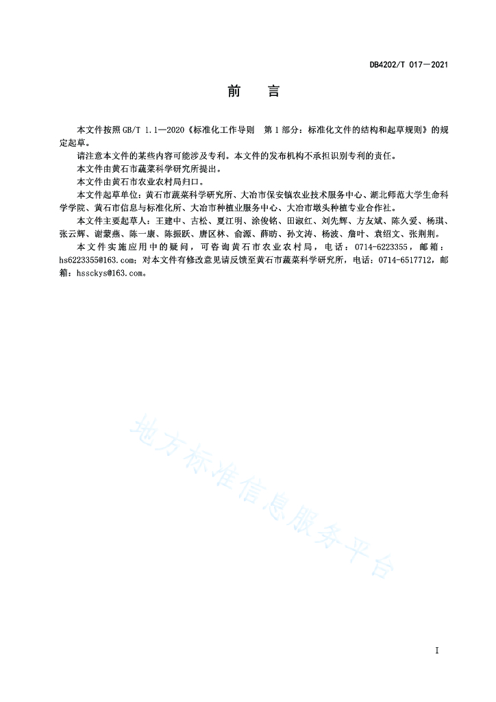 黄石市蔬菜科学研究所、大冶市保安镇农业技术服务中心、湖北师范大学生命科学学院、黄石市信息与标准化所、大冶市种植业服务中心、大冶市墩头种植专业合作社