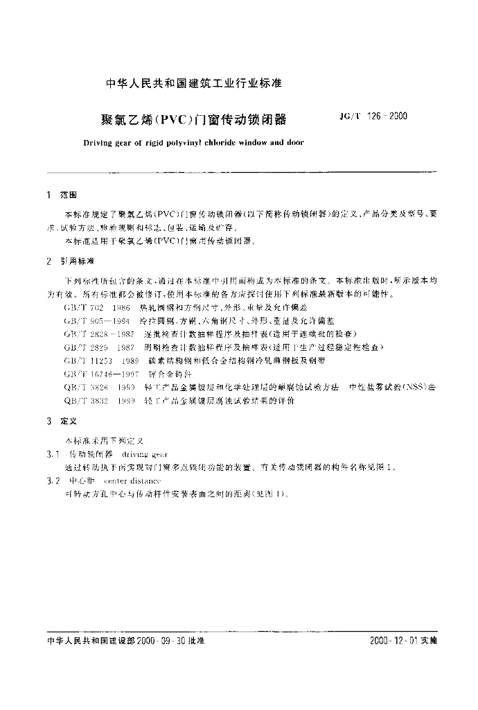 JG/T 126-2000 聚氯乙烯(PVC)门窗传动锁闭器