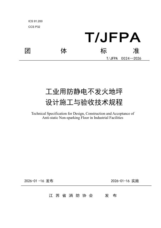 T/JFPA 0024-2026 工业用防静电不发火地坪设计施工与验收技术规程