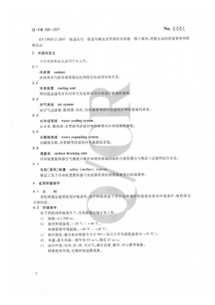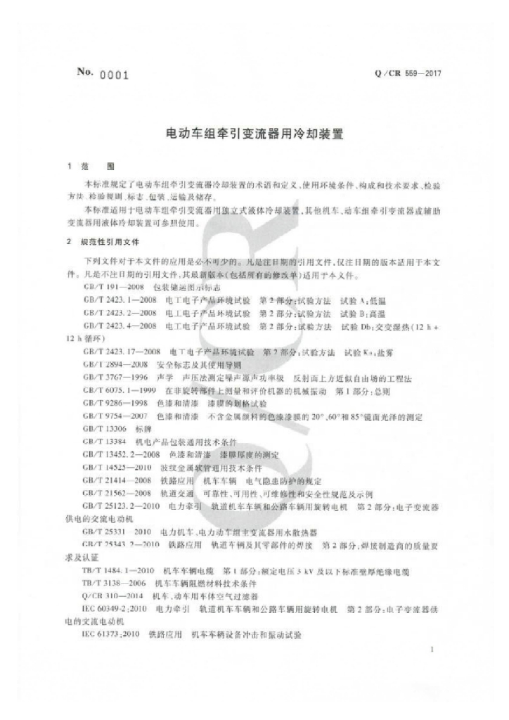 Q/CR 559-2017 电动车组牵引变流器用冷却装置