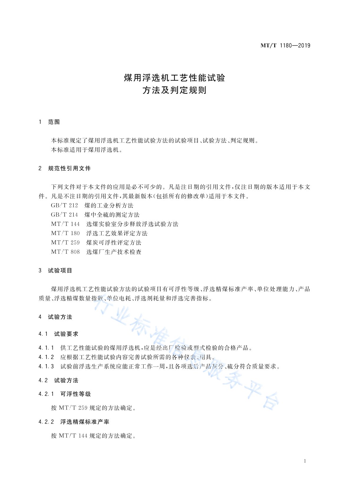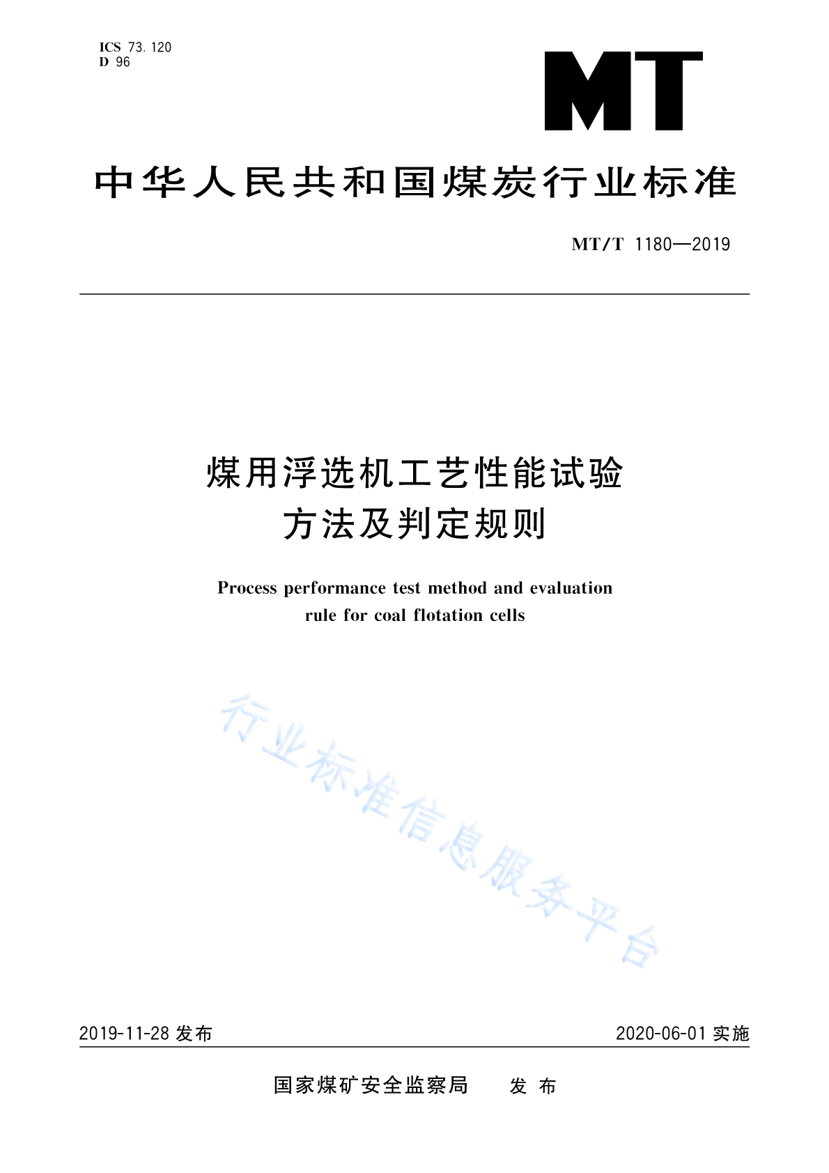 MT/T 1180-2019 煤用浮选机工艺性能试验方法及判定规则