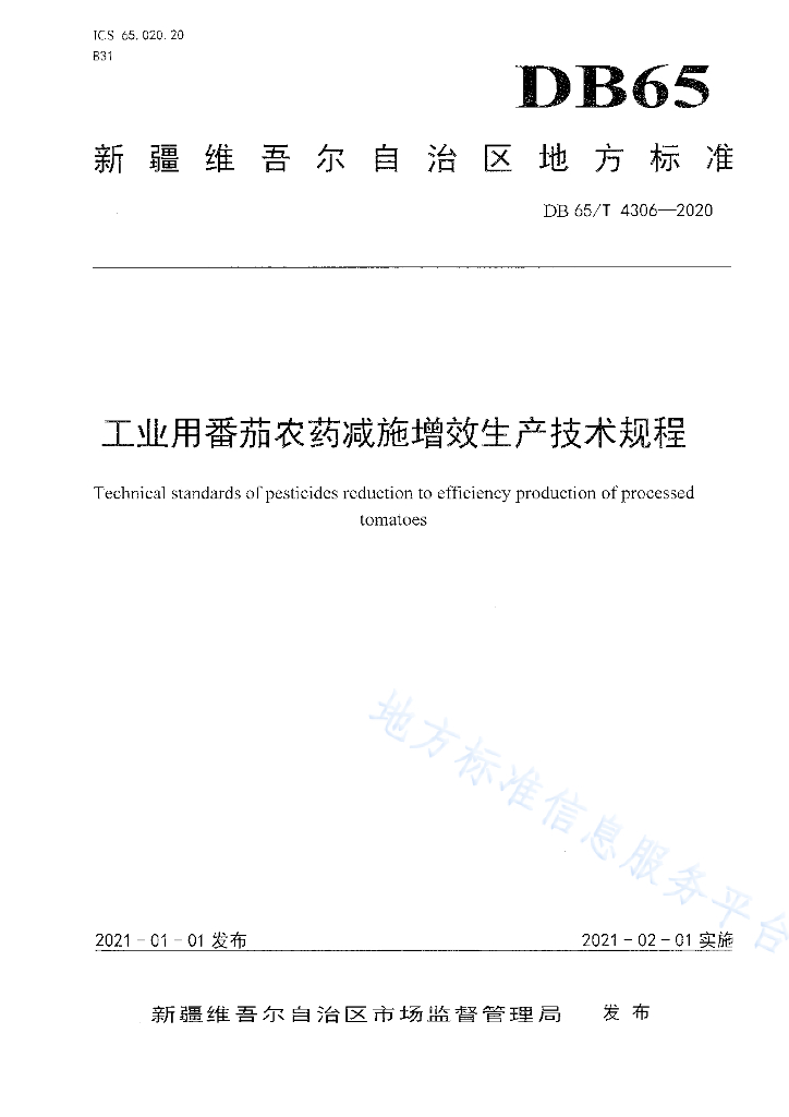 DB65/T 4306-2020 工业用番茄农药减施增效生产技术规程