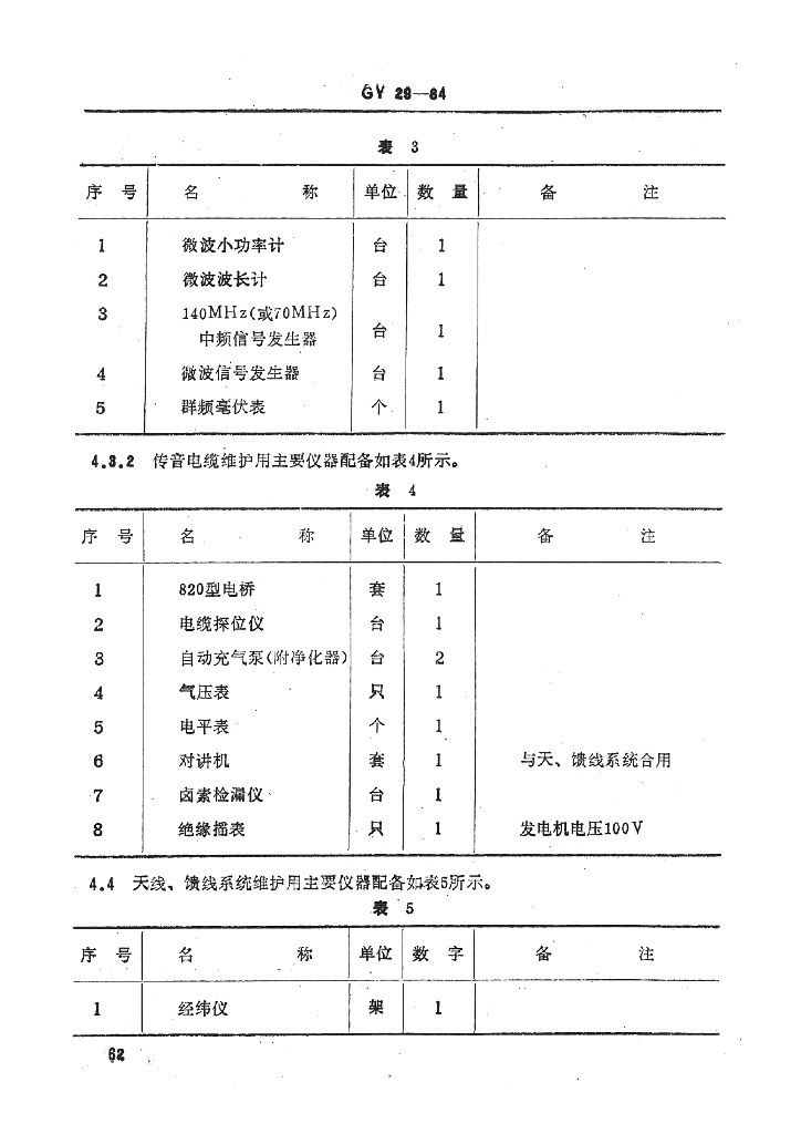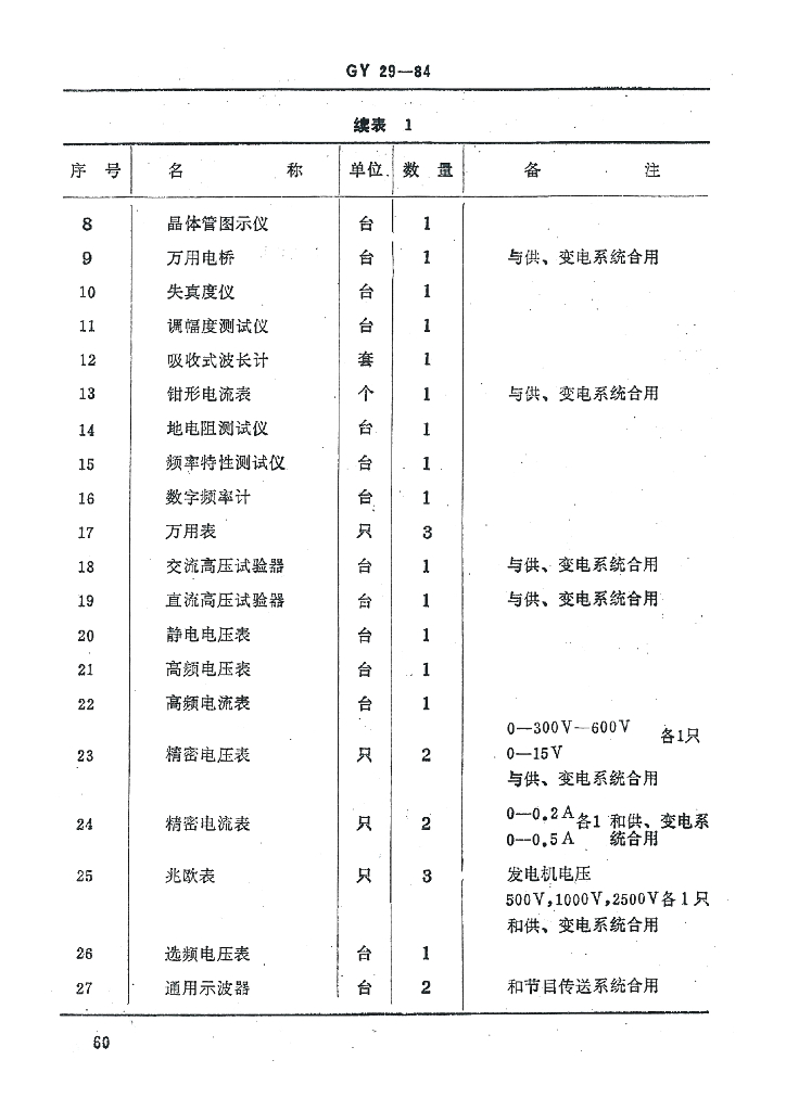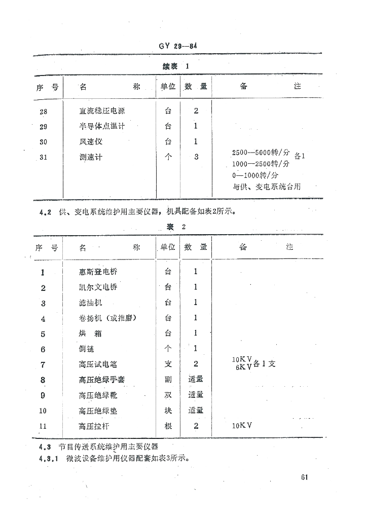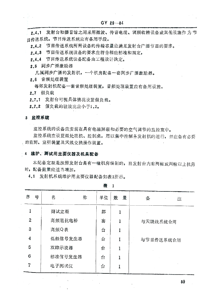 GY 29-1984 省级中、短波广播发射台主要技术设备配备定额