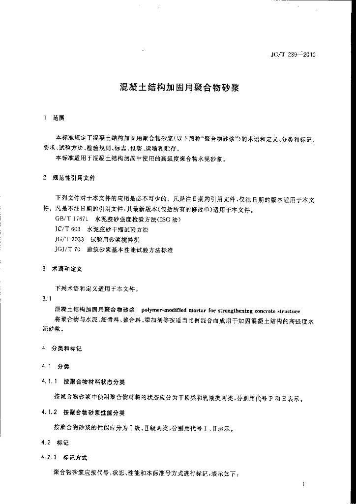 JG/T 289-2010 混凝土结构加固用聚合物砂浆