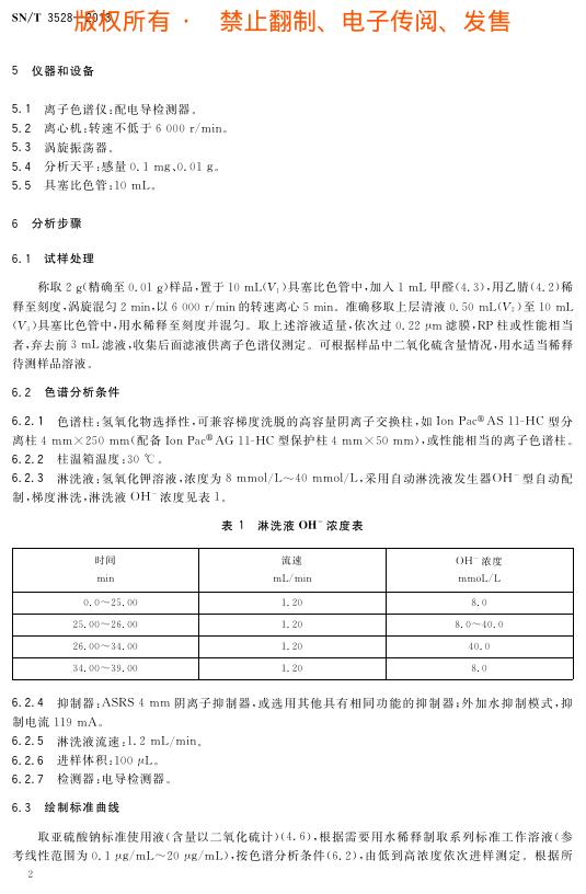 SN/T 3528-2013 进出口化妆品中亚硫酸盐和亚硫酸氢盐类的测定 离子色谱法