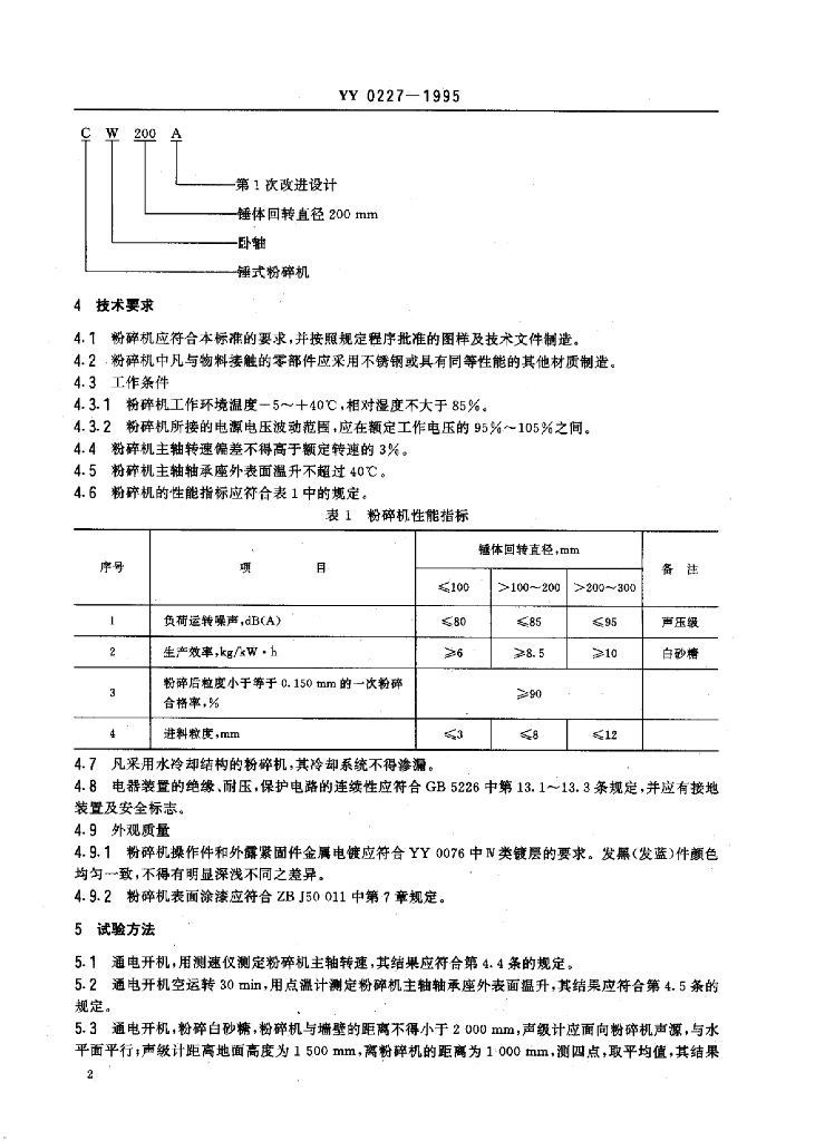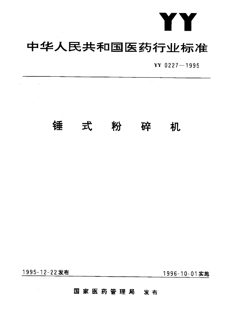 YY 0227-1995 锤式粉碎机