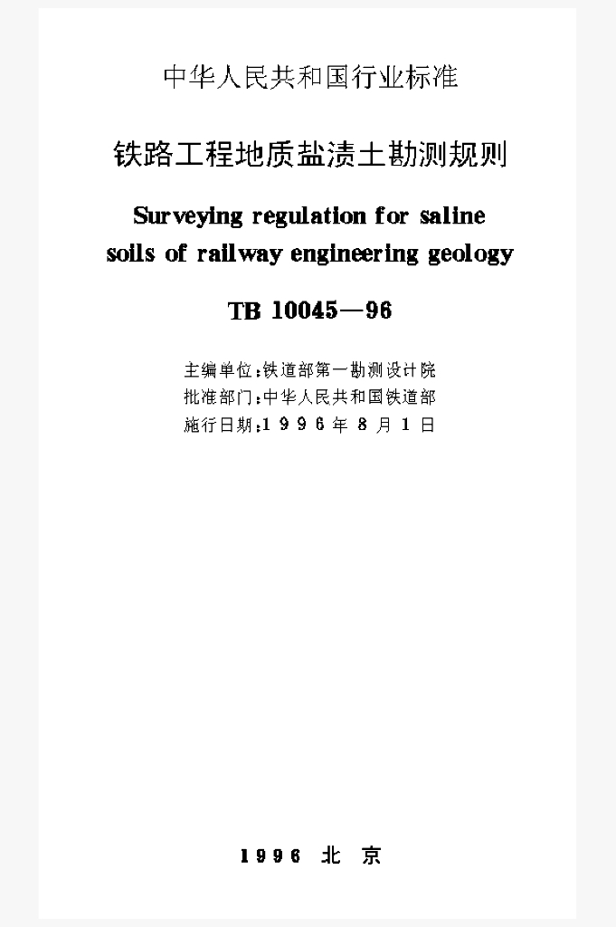 TB 10045-1996 铁路工程地质盐渍土勘测规则
