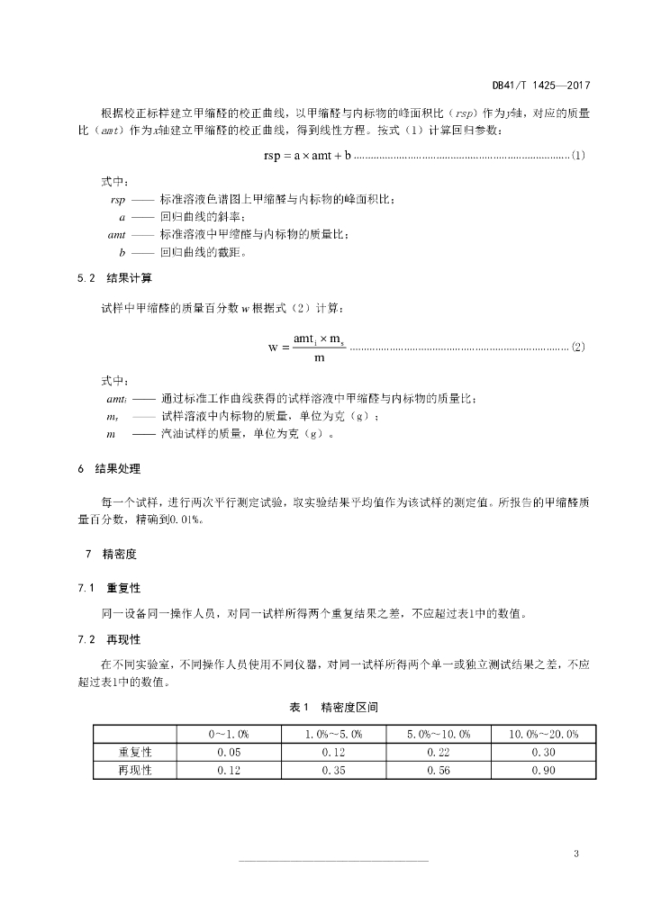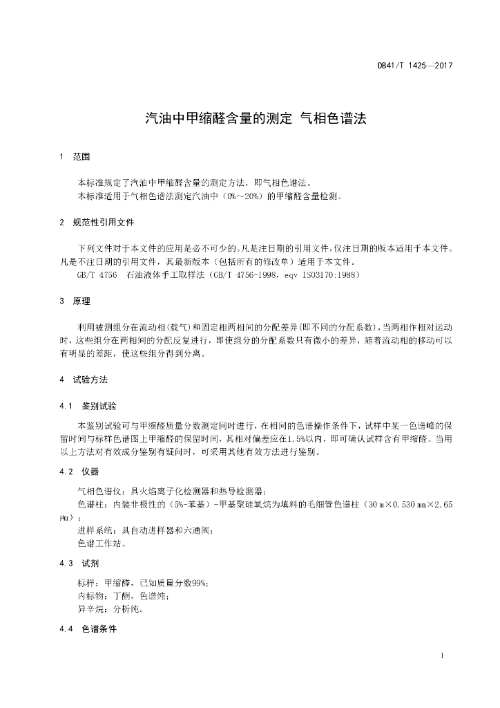 DB41/T 1425-2017 汽油中甲缩醛含量的测定 气相色谱法