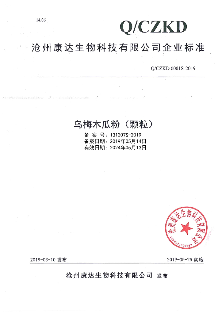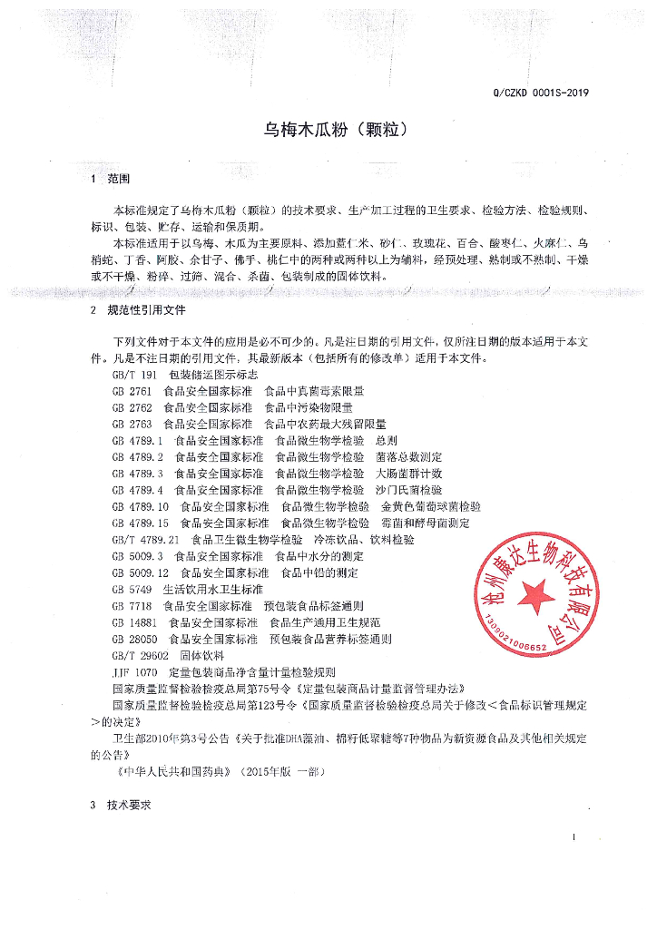Q/CZKD 0001S-2019 乌梅木瓜粉(颗粒)