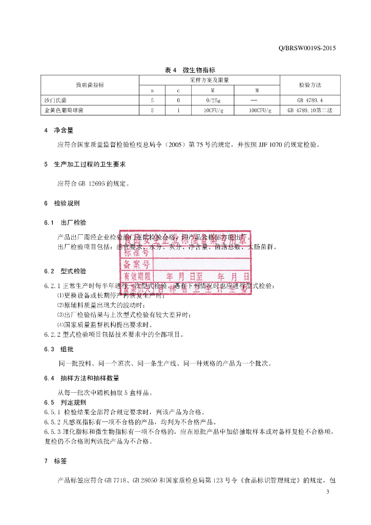 Q/BRSW 0019S-2015 通化博仁生物科技有限公司 玉竹杏仁粉