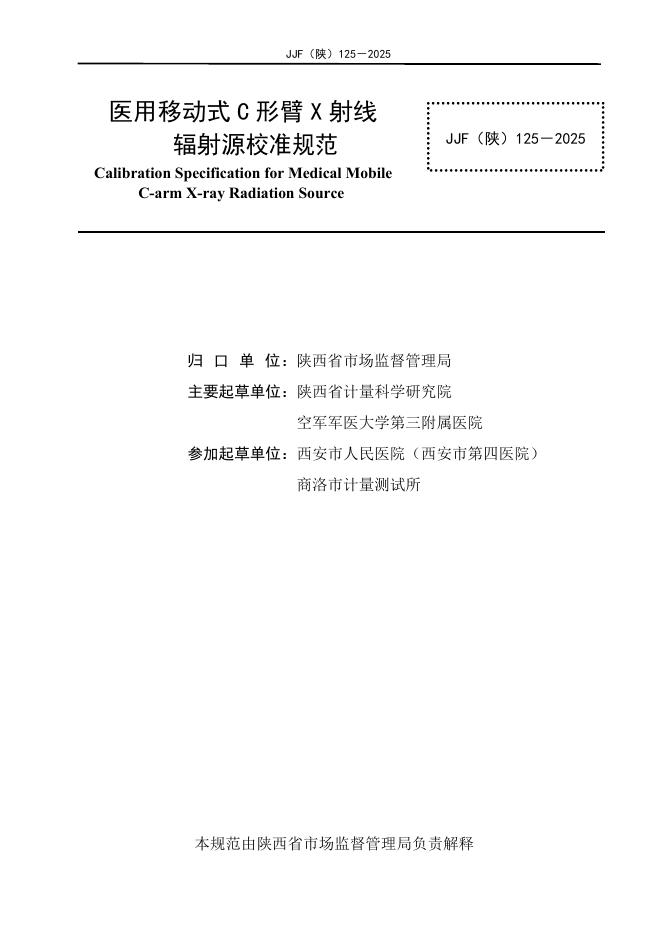 JJF(陕)125-2025 医用移动式 C 形臂 X 射线辐射源校准规范