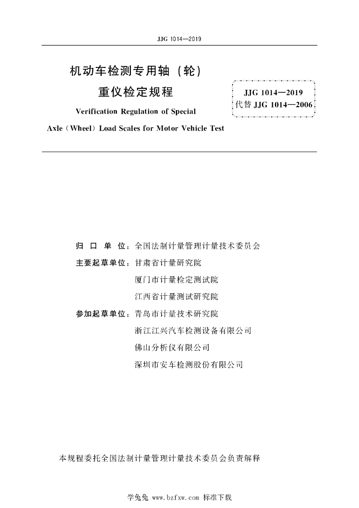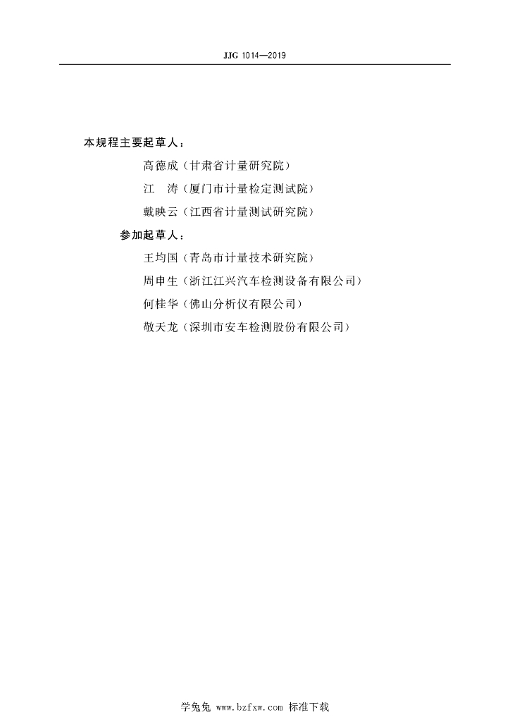 高德成(甘肃省计量研究院)、江涛(厦门市计量检定测试院)、戴映云(江西省计量测试研究院)、王均国(青岛市计量技术研究院)、周申生(浙江江兴汽车检测设备有限公司)、何桂华(佛山分析仪有限公司)、敬天龙(深圳市安车检测股份有限公司)